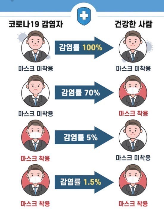 - 마스크를 쓰고 안쓰고 감염률 차이