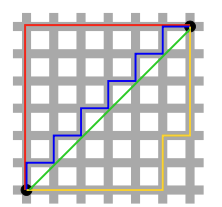 1) L1 노름 : 각 성분의 " 변화량의 절대값 " 을 모두 더합니다. (그림에서 빨강, 노랑, 파랑선)